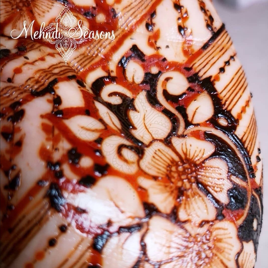 The Henna Aftercare Sealant spray is perfect to use over your dried henna design. The henna application on the skin will stick on for longer without it crumbling away – allowing for better stain results. The sealant spray is like using the traditional method of sugar and lemon juice dabbing. You can either gently spray directly onto the henna, or if you prefer the traditional method you can spray onto a cotton wool ball and dab over the dried henna.